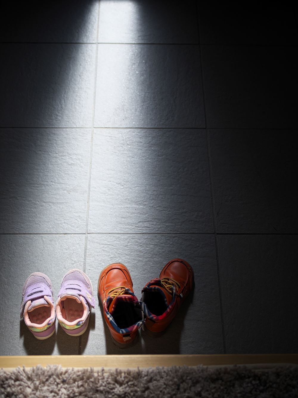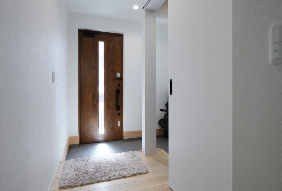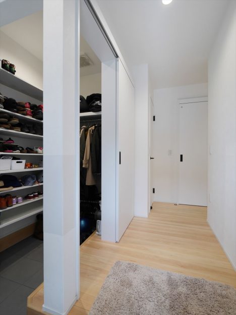玄関からのシューズクローゼット。たくさん収納ができ、そのままお家の中へはいっていける快適導線その①