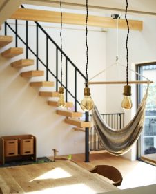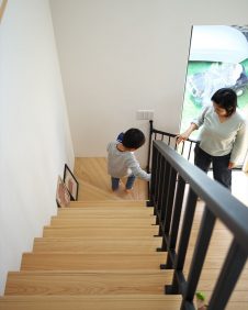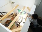 無垢な感じか大好きなT様。バァーナホーム特製「匠の階段」、フローリング材、梁等の構造材に無垢の檜材をふんだんに採用し、明るくてあたたかくて癒される空間に仕上がりました。