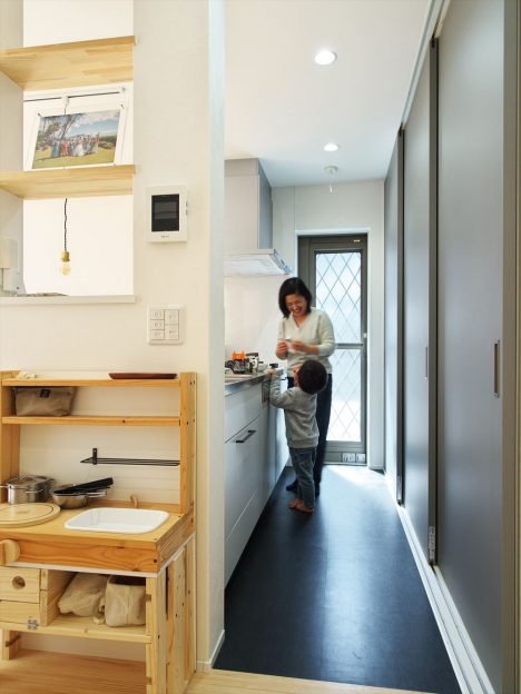 朝、目覚めてからの家族みんなの導線、また家事をこなしていくためのスムーズな導線を考えた間取り配置になってます。T様邸の家事は全て1階で完結する快適導線その②です。
