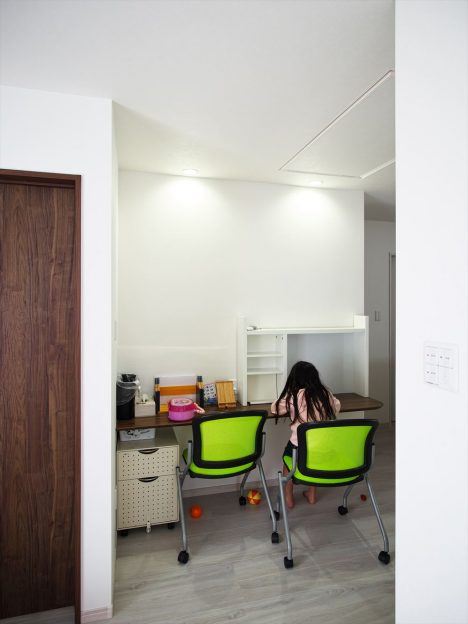 子供たちが自分たちで考えて行動がとれるように、2階にはキッズスペースが多く設けられました。その中のスタディカウンターです。優しい親心が詰まったスペースになりました。