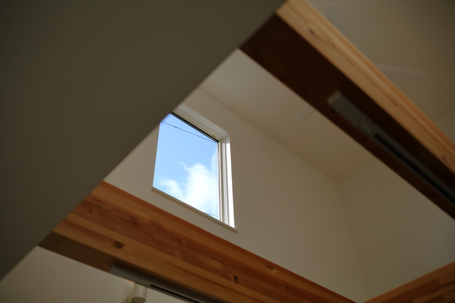 家族みんなが集まるリビング空間。吹き抜けを設けて、自然の恵みもたくさん集まる大空間になりました。人も自然も集まってくる居心地のいい空間になりました。