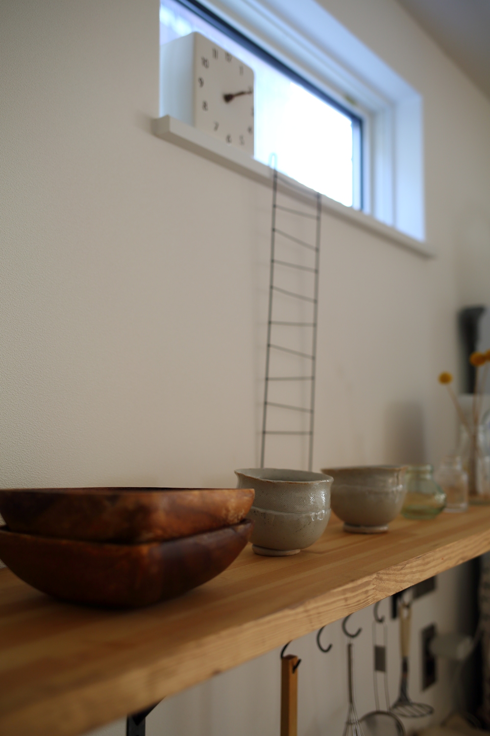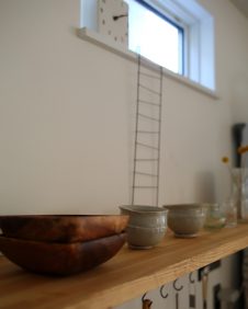 無垢板パイン材のあたたかさとDIYのキッチン腰壁ペイント。なんともマッチした風合いに仕上がりました。